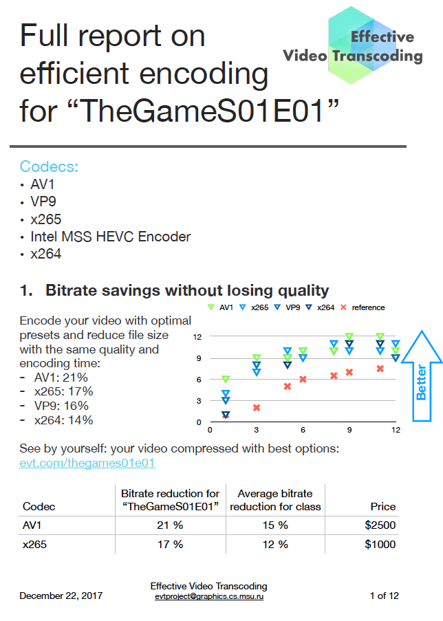 For almost 14 years, Lomonosov MSU Graphics &Media Lab's video group has been conducting video codecs comparisons